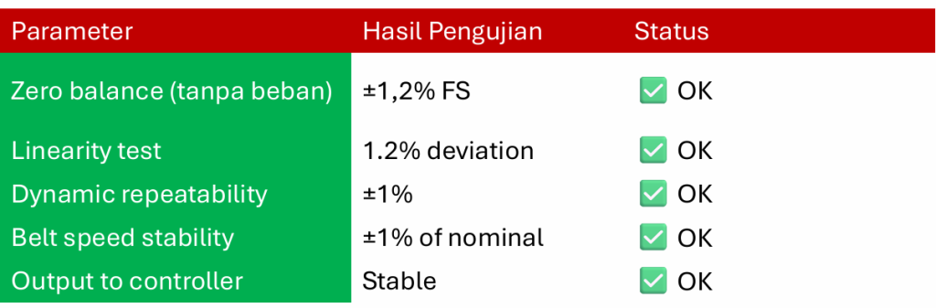 - Dilakukan verifikasi akhir pada beban operasi normal, memastikan kestabilan pembacaan dan keakuratan pengukuran sesuai spesifikasi.